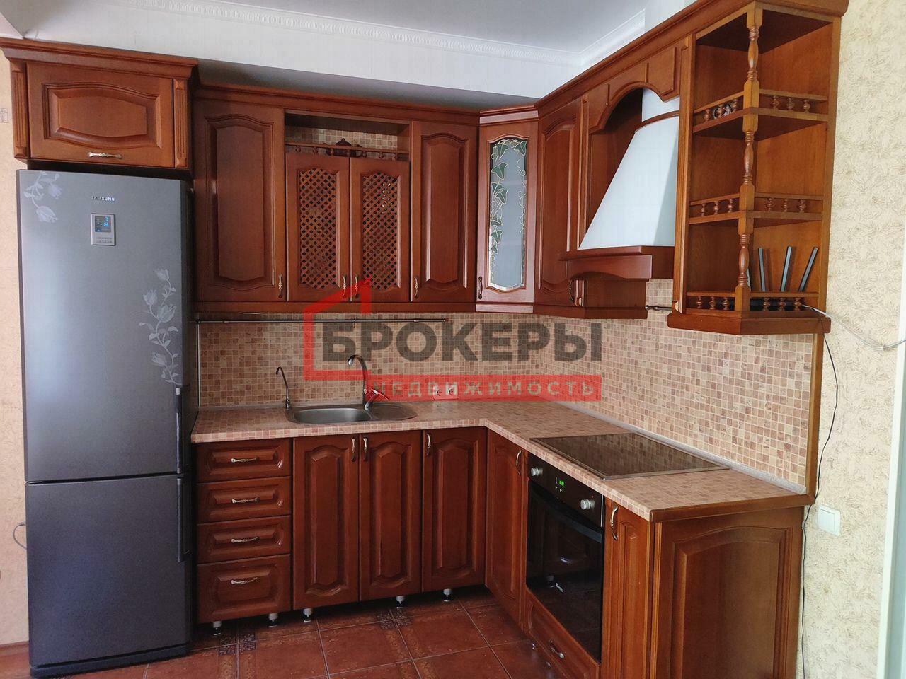 Кухня - гостиная 14.4м2, выход на лоджию и во двор, мягкая мебель и кухонный гарнитур.