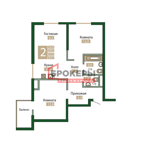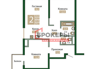 -Общая площадь - 64,7 м2