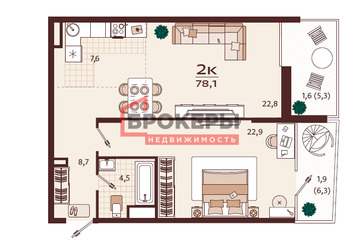 Про квартиру:-Общая площадь - 78,1 м2