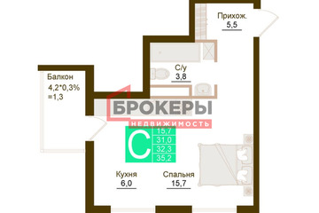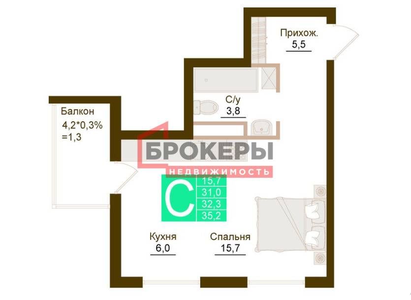 -Общая площадь - 35,2 м2