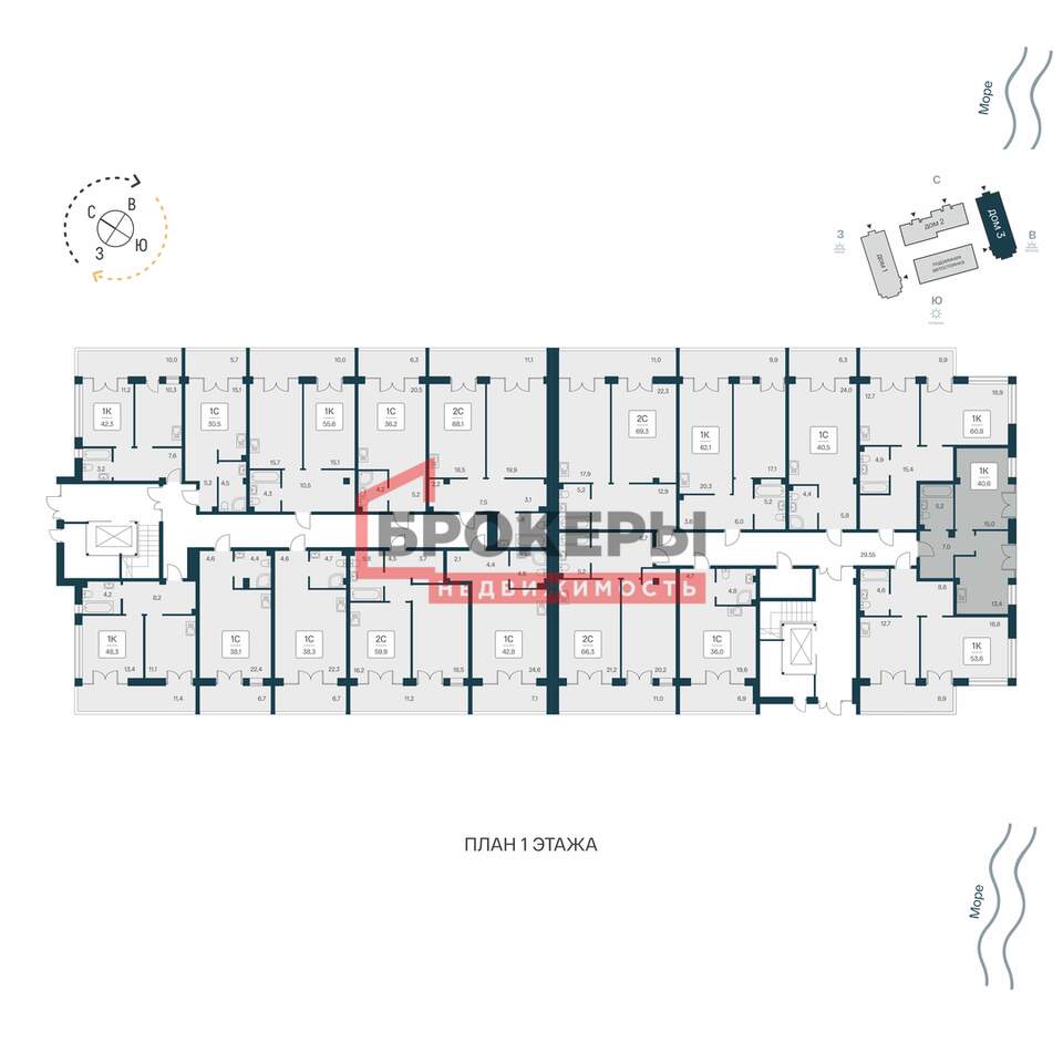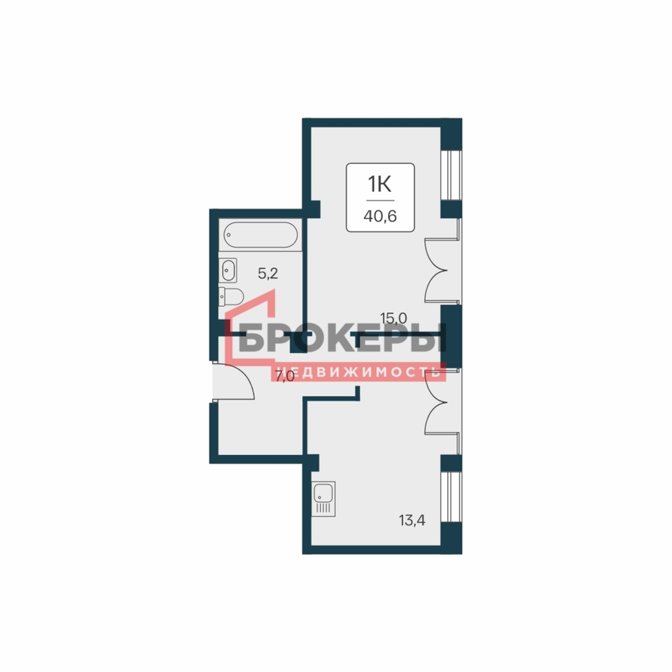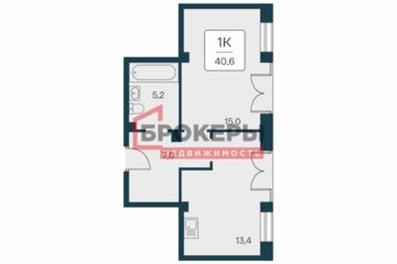 - Площадь 40,6 м2