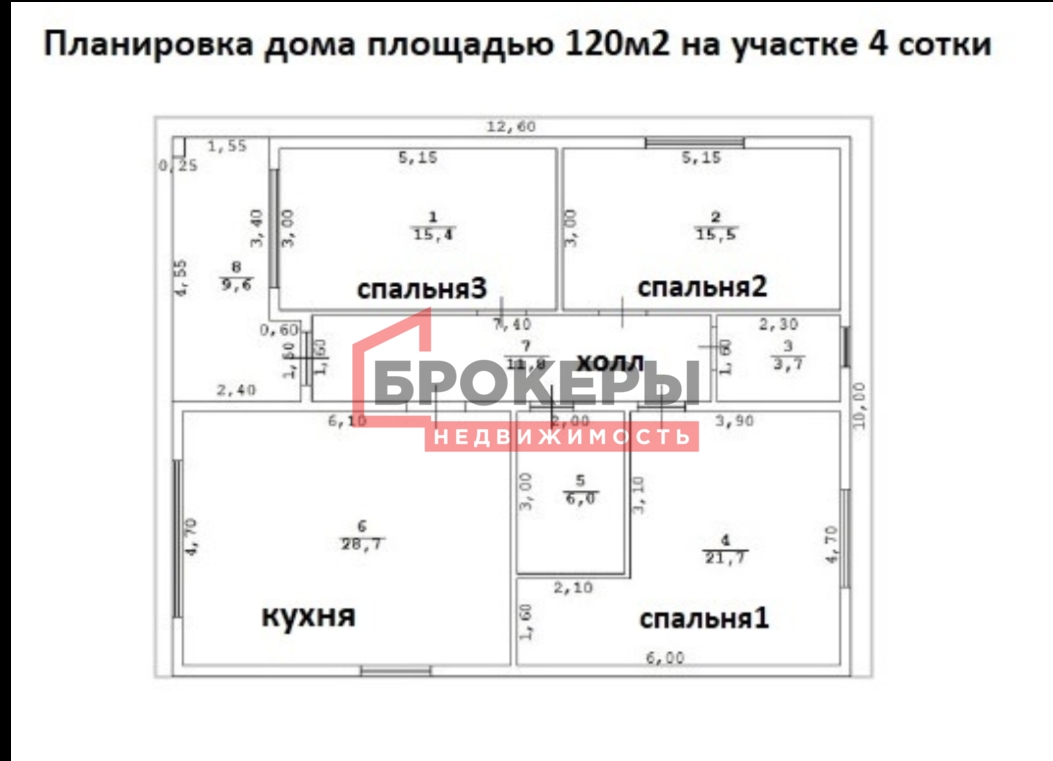 Планировка дома: Дом состоит из 3 спален (15,4, 15,5 м2, 21.7м2) с