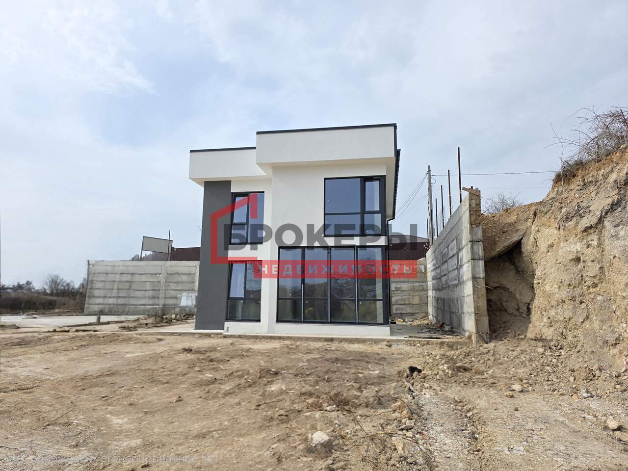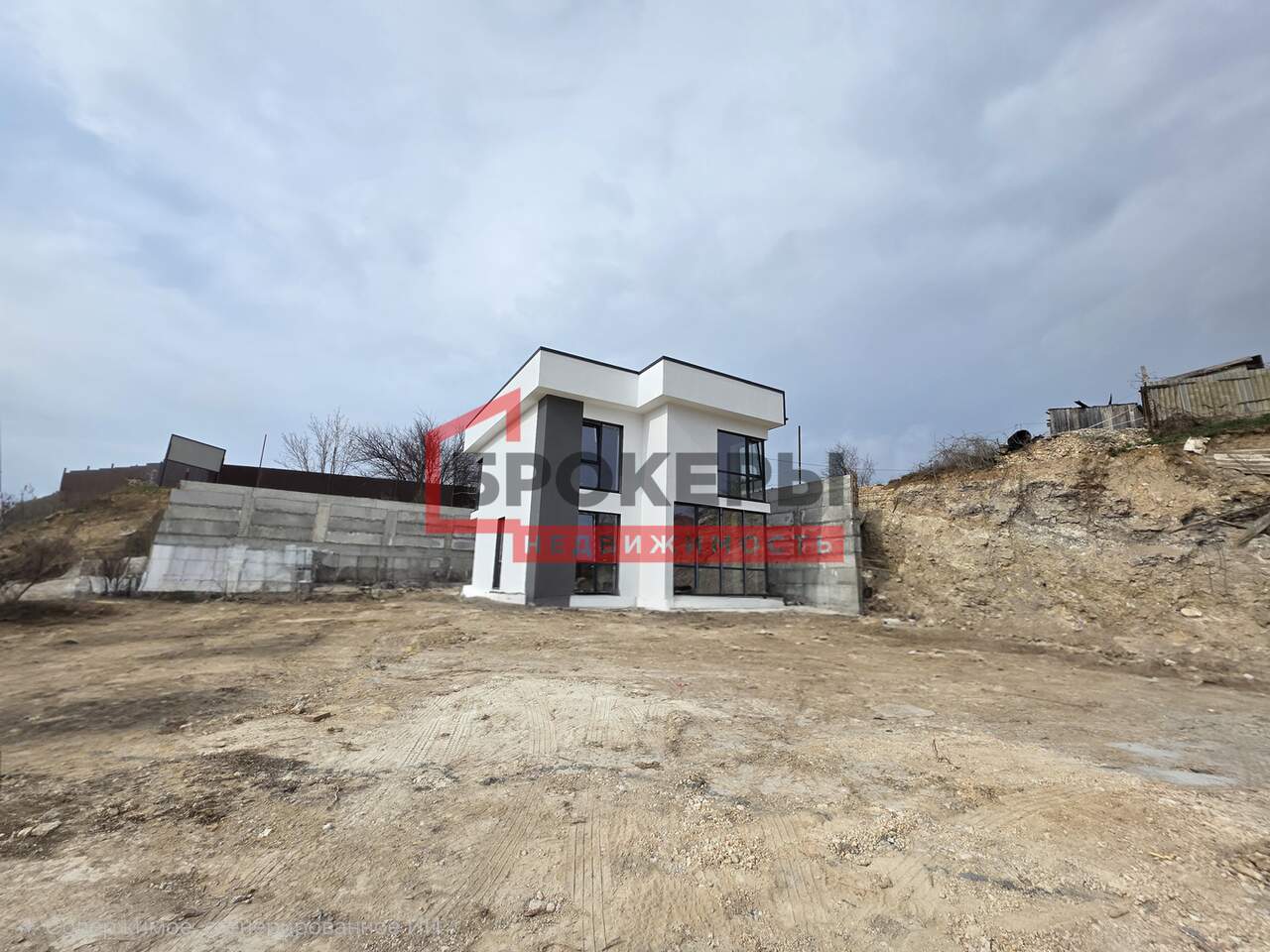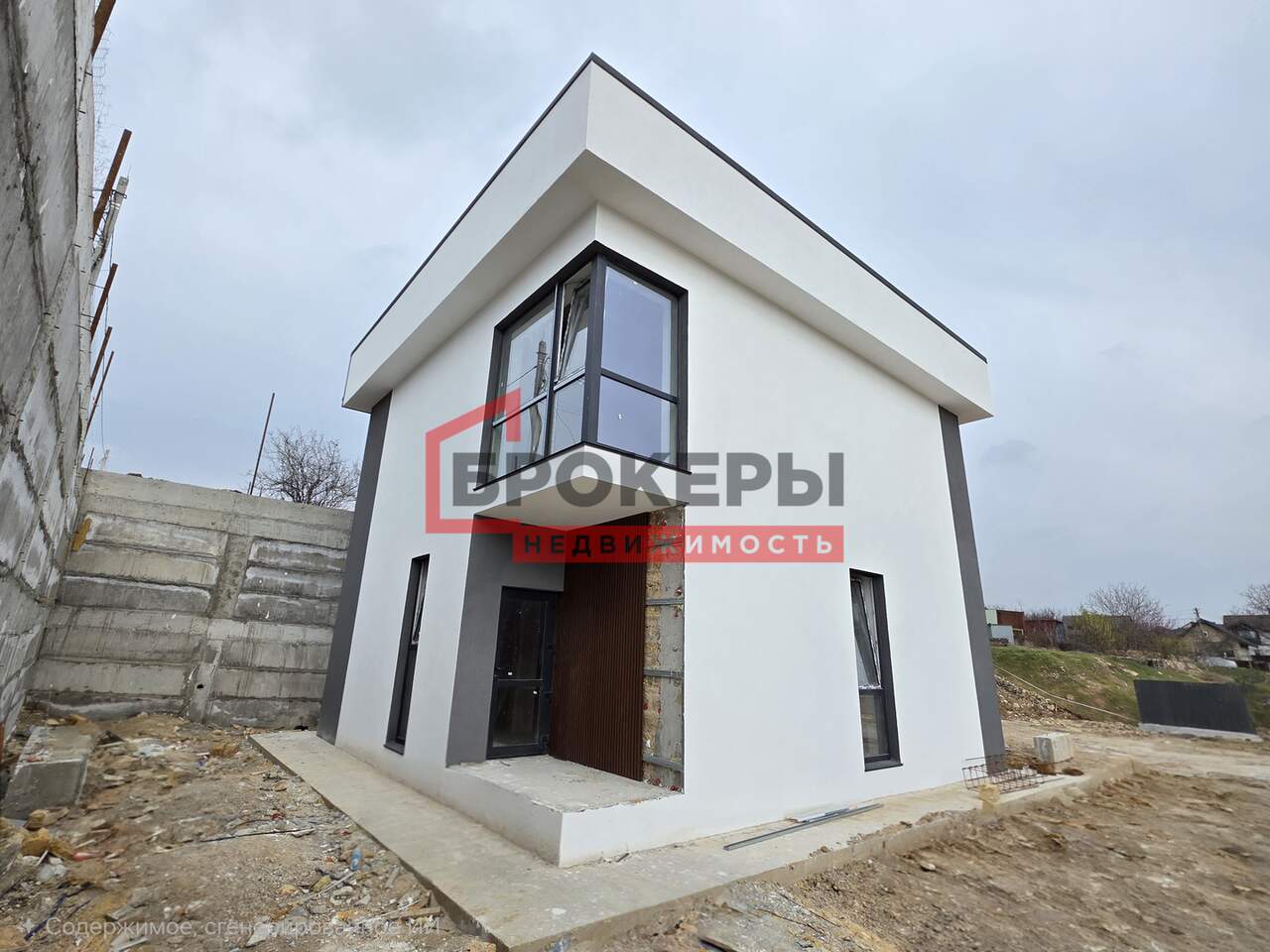 Построен из ракушечника в камень, утеплен пенопластом 5 см, фасад оштукатурен "барашком". Внутри выполнена предчистовая отделка стен, полы теплые с чистовой стяжкой.