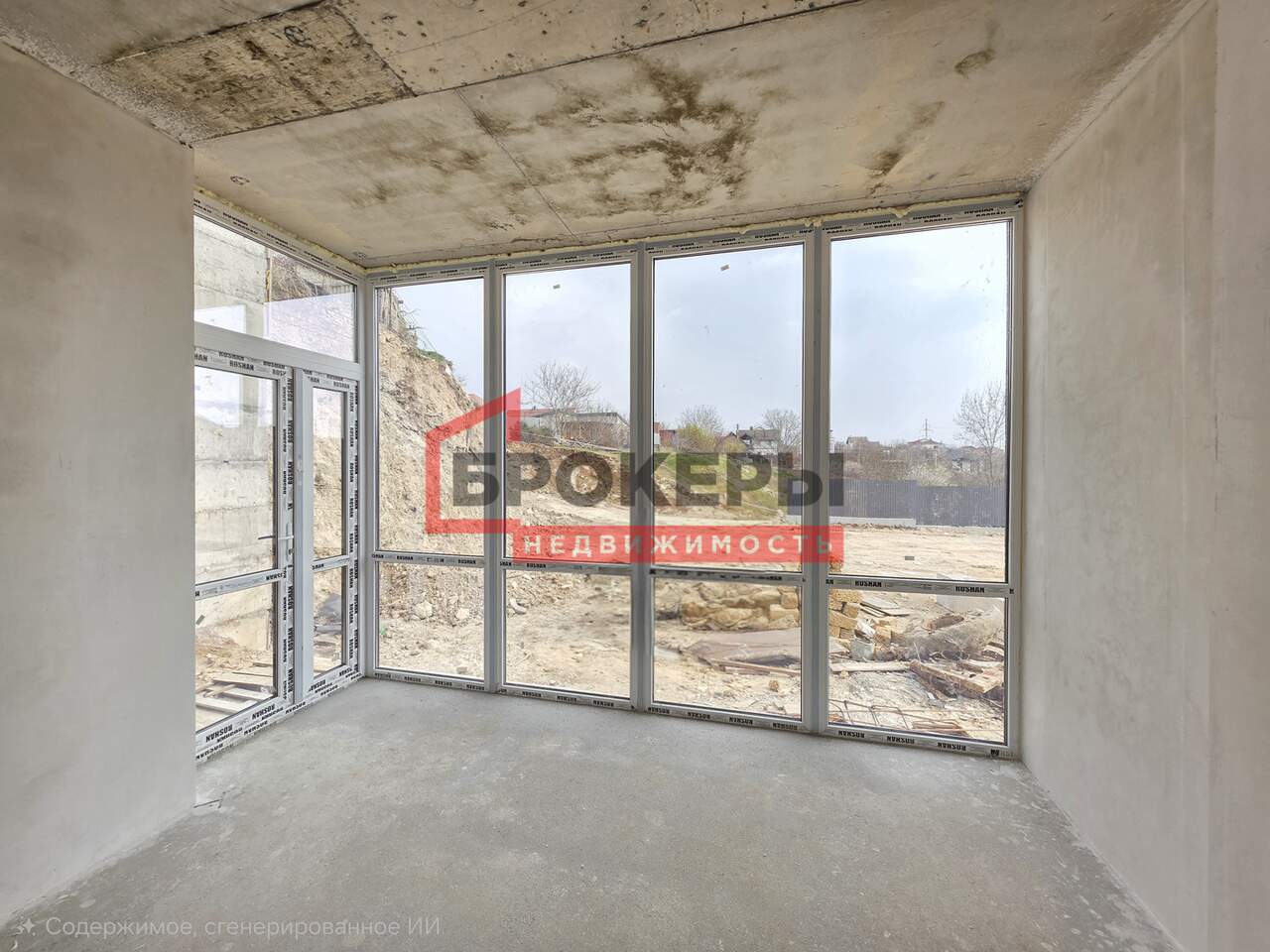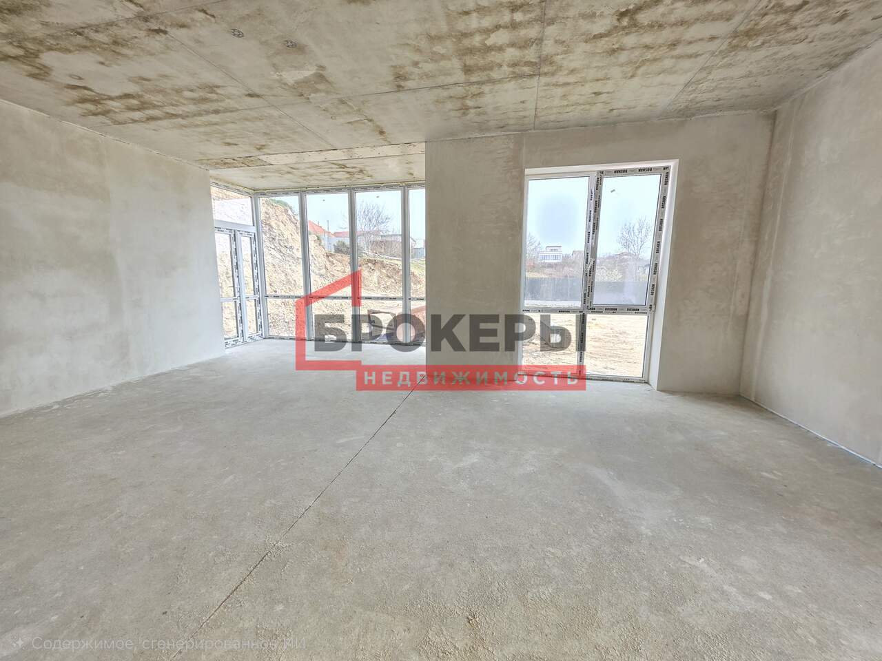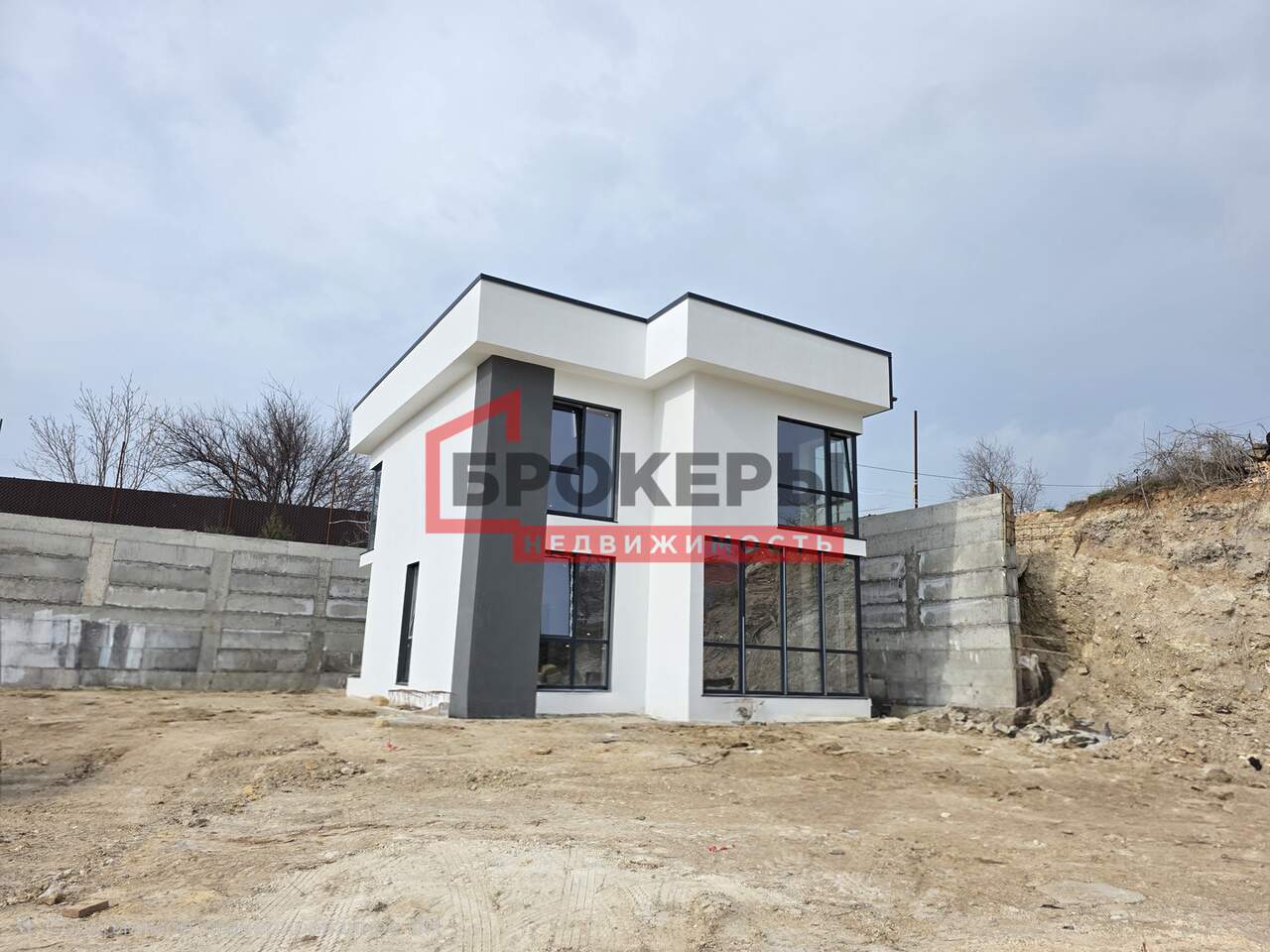 Построен из ракушечника в камень, утеплен пенопластом 5 см, фасад оштукатурен "барашком". Внутри выполнена предчистовая отделка стен, полы теплые с чистовой стяжкой.