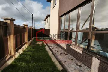 Дом выполнен из полистиролбетона толщиной в 30см, фасад оштукатурен, отделка «шуба». Перекрытие между этажами - плиты ЖБИ. Кровля – полностью готова. Стеклопакеты по всему дому (фирма Рехау, тройной стеклопакет), все двери новые, стены готовы под новые обои или покраску. Стяжка черновая, готова под монтаж теплого пола. Высокие потолки (2,8м), что визуально создает ощущение большого пространства. Два входа/выхода на участок. Все коммуникации заведены в дом, инженерная часть проложена по дому и выведена на улицу, разведены «мокрые точки», электрические сети подключены.