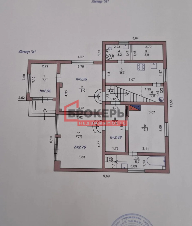 Общая плoщадь 173 м2 .