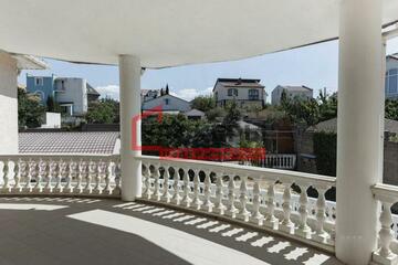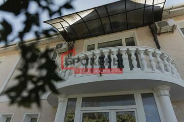 забором, городские коммуникации, откатные ворота, ухоженный двор, асфальтированный заезд с друх сторон. На территории гостевой дом, гараж, крытый бассейн, баня, зона для барбекю, декоративный пруд. Материал стен ракушечник.