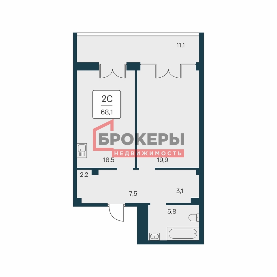 - Лоджия - 11,1 м2