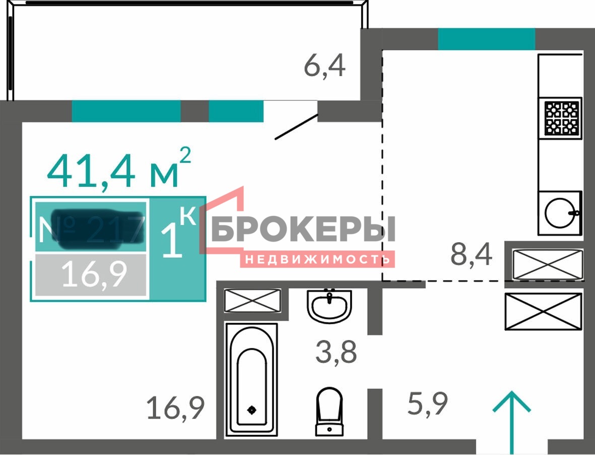 - Площадь 41,4 м2