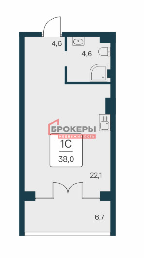 - Комната площадью 22,1 м2