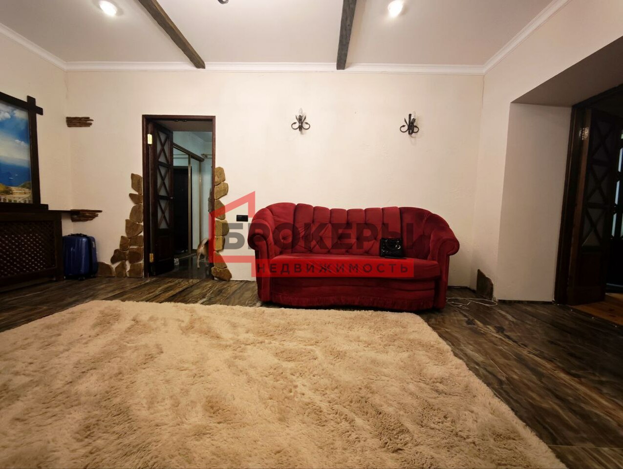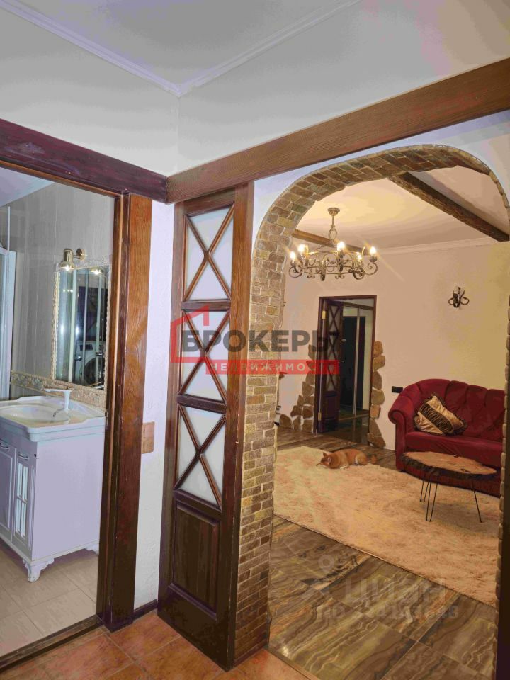 Дизайн квартиры выполнен в стиле шале из высококачественных материалов: керамогранит, дерево, ковка...