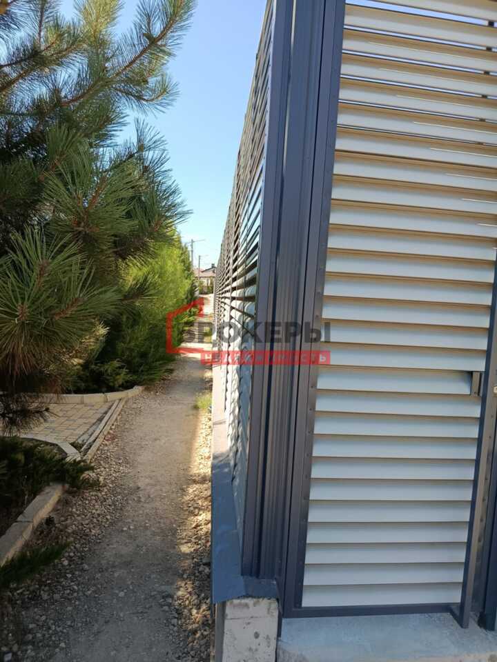 По периметру огорожен металлическим жалюзийным забором на бетонном фундаме тонте, высотой 3 м. Установлено две калитки с автоматическими замками и откатные ворота шириной 4,5 м.