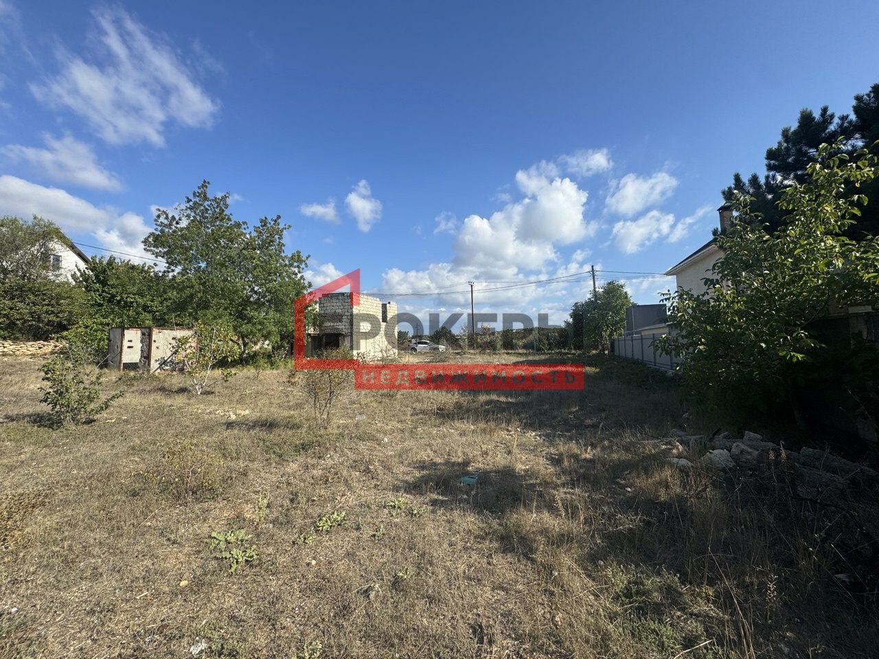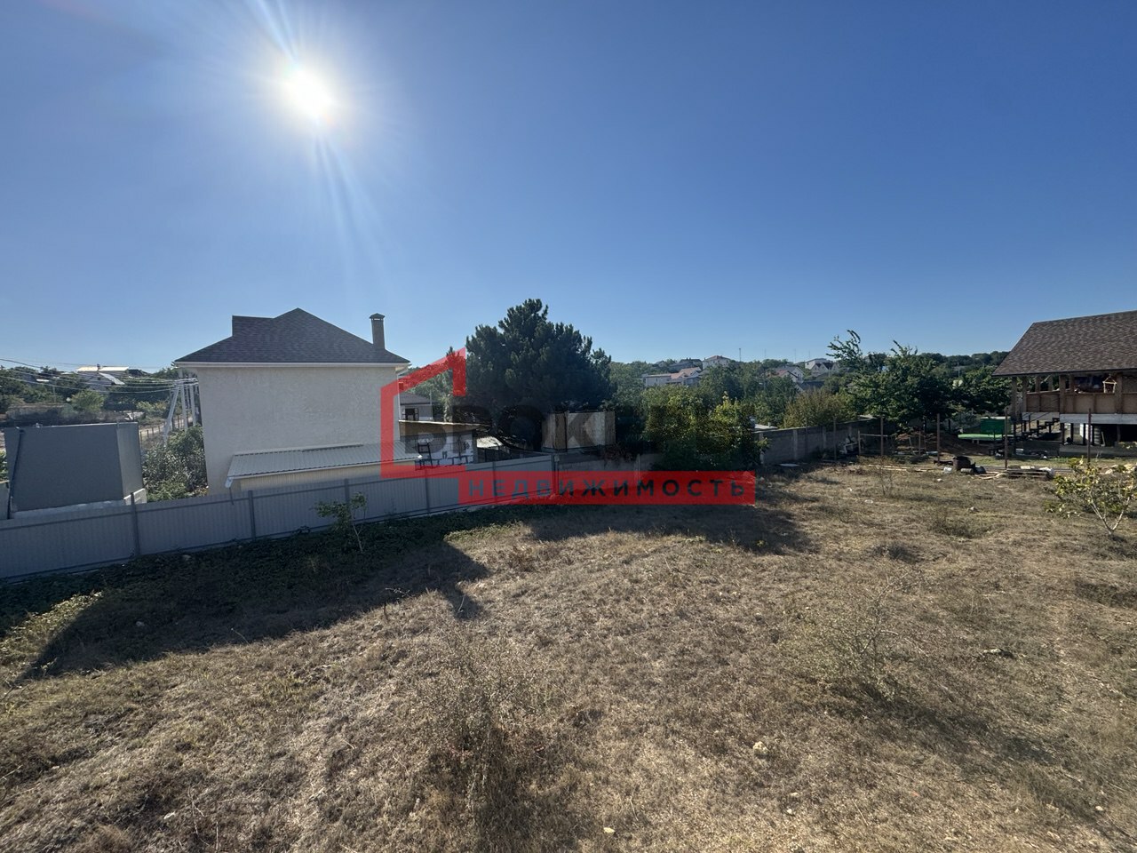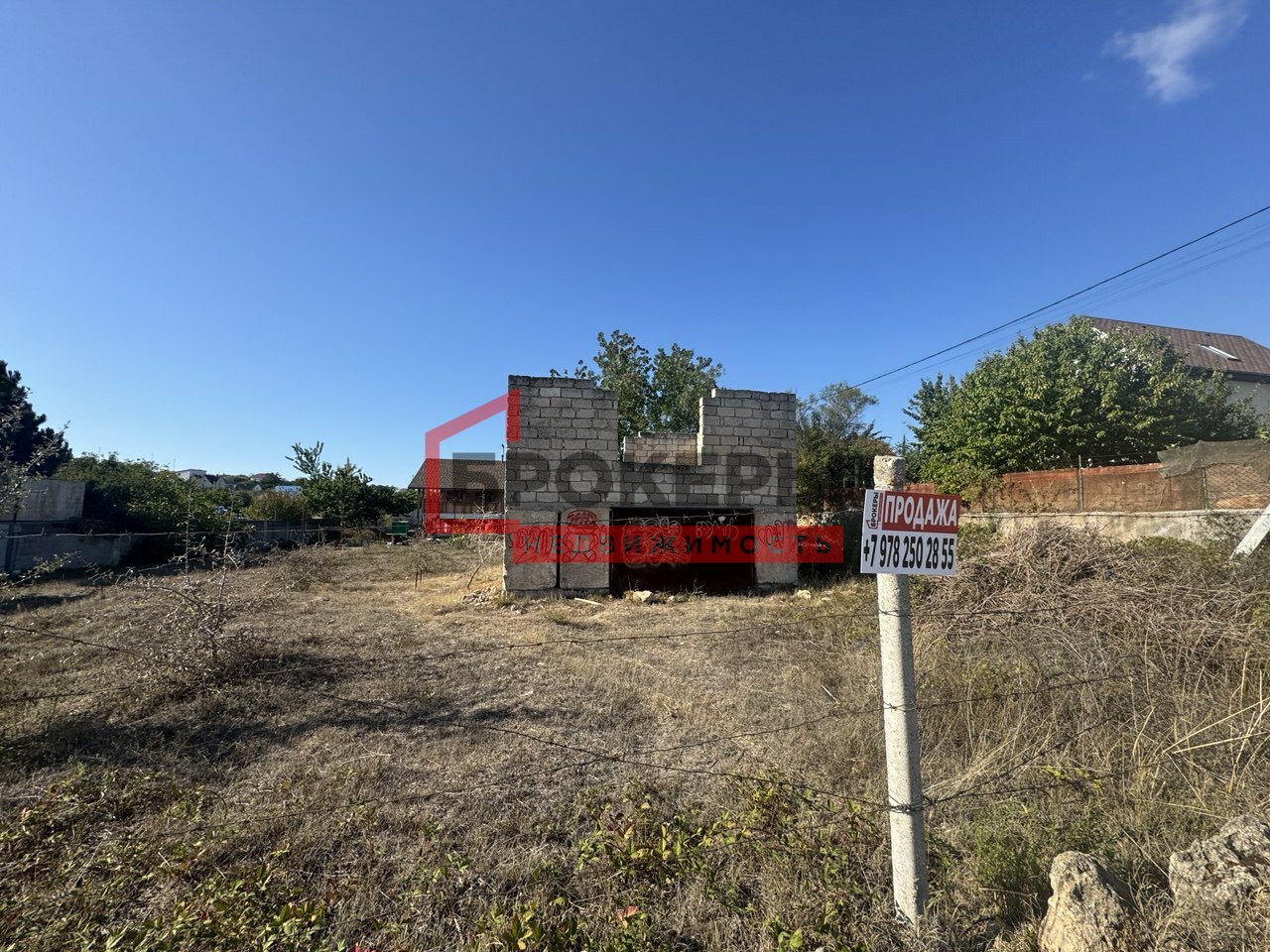 - Территория огорожена с двух сторон, стоит недострой из ракушки в 2 этажа